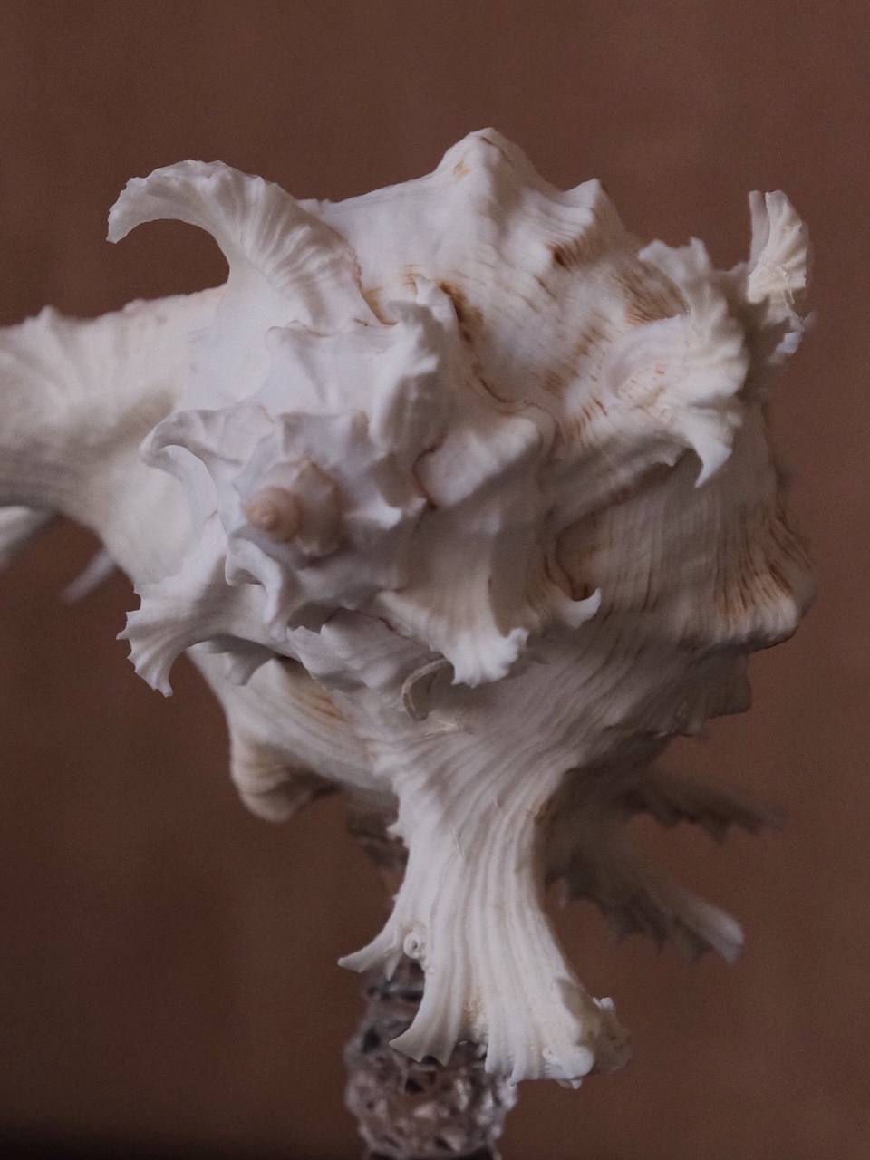 Привезенные из Тайланда красивые белые ракушки с острыми шипами скрывающими нежно розовую внутреннюю часть. Это так красиво!