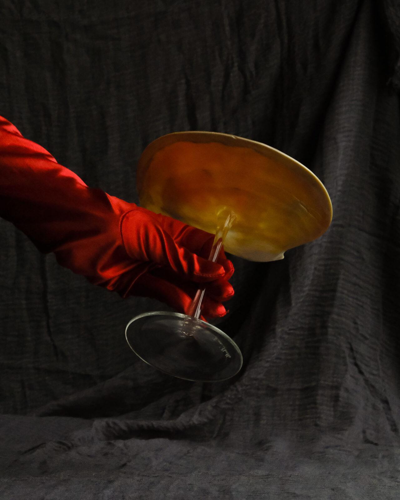 Золотой диск с радужными переливами на стеклянной высокой ножке 💛