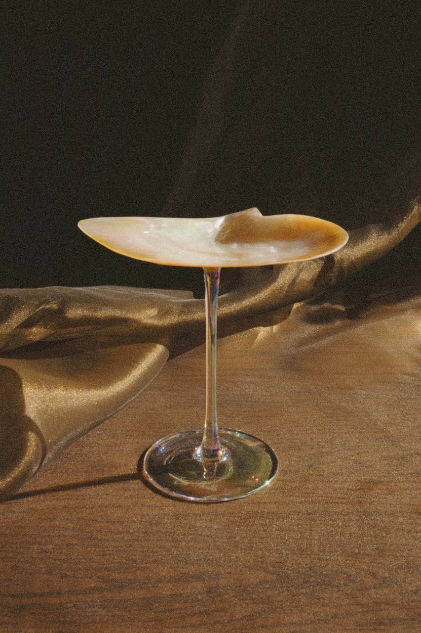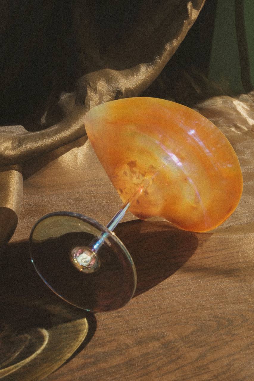 Золотой диск с радужными переливами на перламутровой ножке 💛